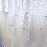 レースのカーテンの丈を短くするには、失敗しやすいミシンより手縫いがおすすめ。切らずに裾上げする縫い方のコツと、カラフルな刺し子糸を使ってぐし縫いするアイデアをご紹介します。