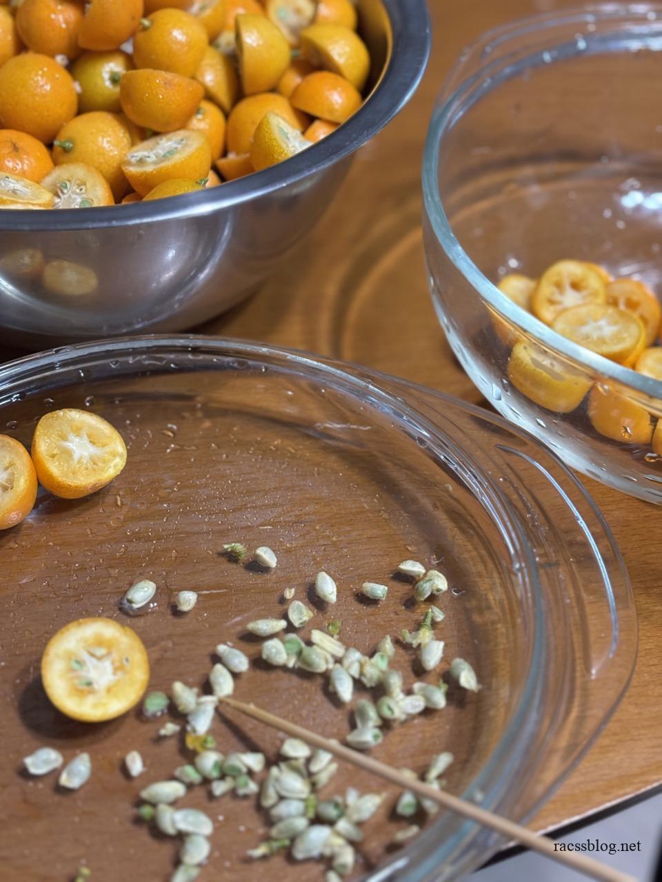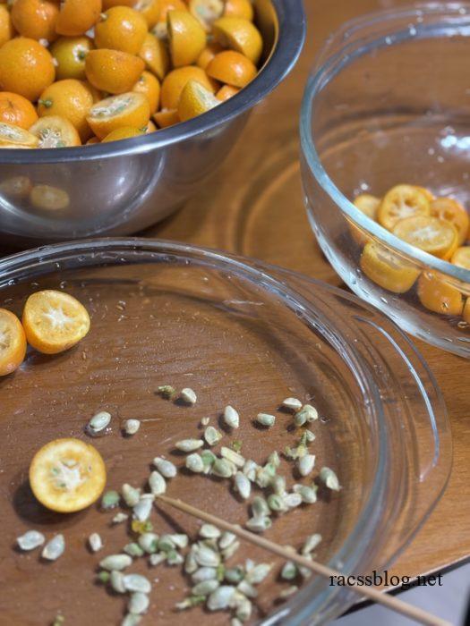 金柑が透き通った感じになったら、煮崩れないうちに火を止めます。