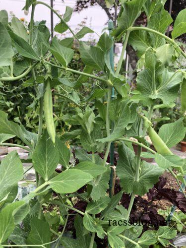 植えるのが遅かったスナップエンドウ、いくらか採れていますがこの暑さでは寿命が短そう・・・