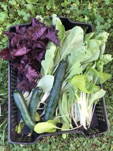 赤紫蘇は脇芽を出させるためにトップを摘みました。雪白体菜や小松菜の間引き菜たくさん。
