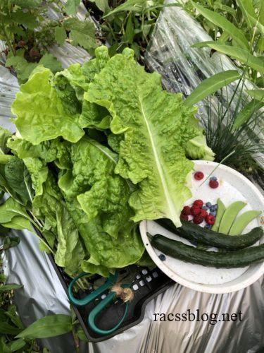 次の日はサンチュたくさん採って焼き肉しましたよ。今年はレタスが柔らかく大きくできたって家庭菜園の先輩も言っていたとおり、蒸し蒸ししてるのに蒸れて傷むわけでもなく、みずみずしい葉っぱが長く採れています。