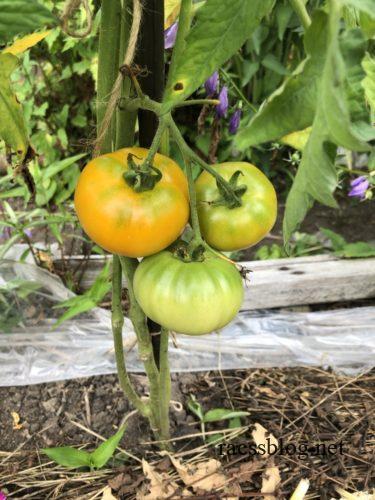 オレンジといえば桃太郎ゴールド。少し色づいてきました。トマトが色づくのには積算温度が重要なので、この暑さはいいんじゃないかしら。