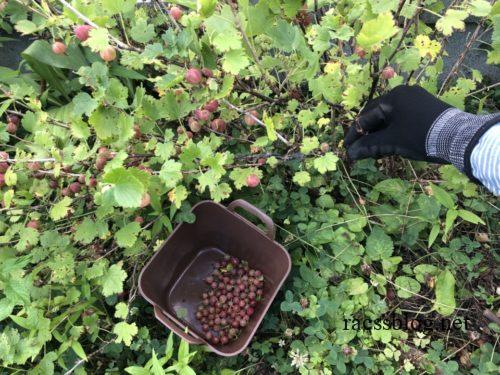 グースベリーも赤くなってきたので収穫です。トゲが怖いんだけど、なんとか完了しました。